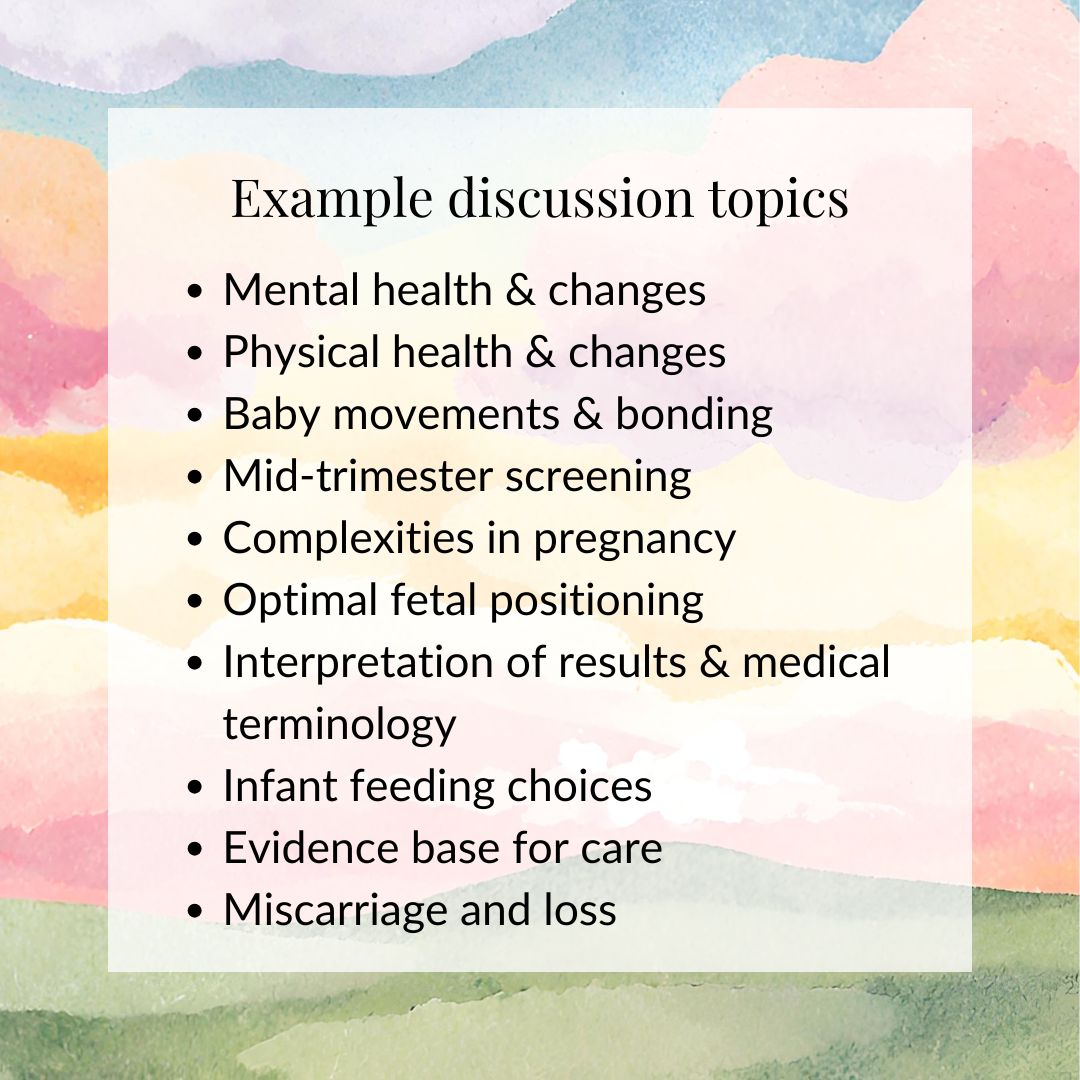 Antenatal support appointments work alongside your regular midwifery care to help fill in the gaps and level up your experience. We've worked alongside thousands of clients and with extensive antenatal counselling experience can ensure you receive the personalised in-depth support you need. This allows you to feel fully informed about all aspects of care and affords you confidence in decision making.