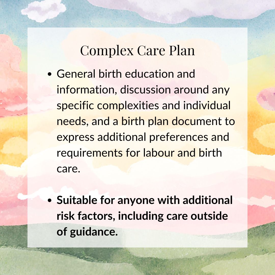 Our birth planning support includes birth education to give you a broad understanding of all the options. We'll gather some initial information about you, your pregnancy, and your preferences allowing us to prepare in advance of meeting you. In your appointment there will be opportunity to ask questions, explore topics of interest, and discuss the evidence base for your care. Finally, we'll compile your preferences, plans and any individualised care requirements into a birth plan document that you can then keep and circulate to your care providers.