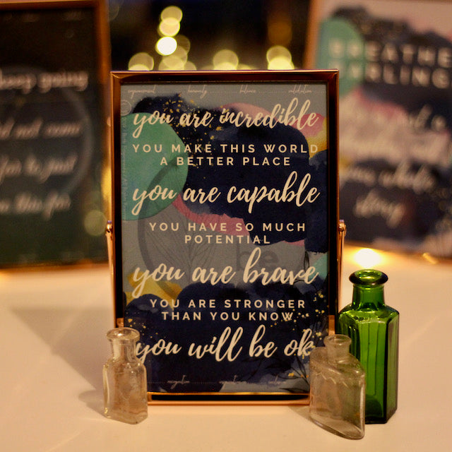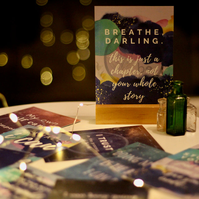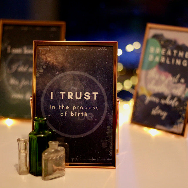 Set of five double sided beautiful affirmations for anyone keeping their head above the water doing birth work. Each A6 card is double sided, small enough to keep handy for those all important reminders.