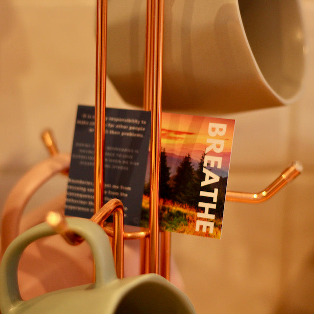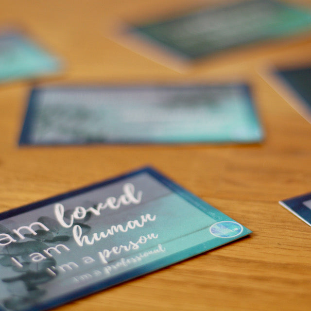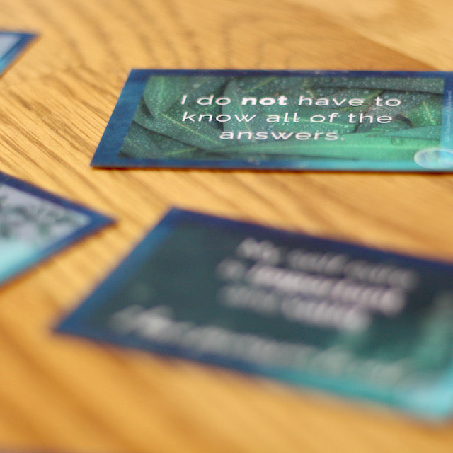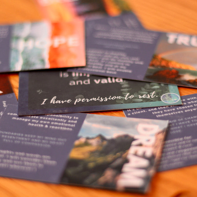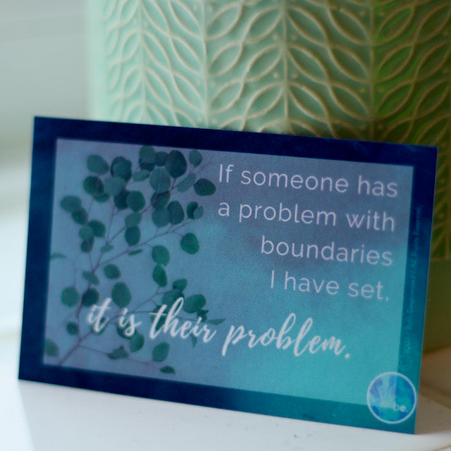 Set of seven double sided affirmations for anyone learning boundaries and self care. Each credit card size affirmation is double sided and laminated, small and durable enough to keep handy for whenever you need those reminders.